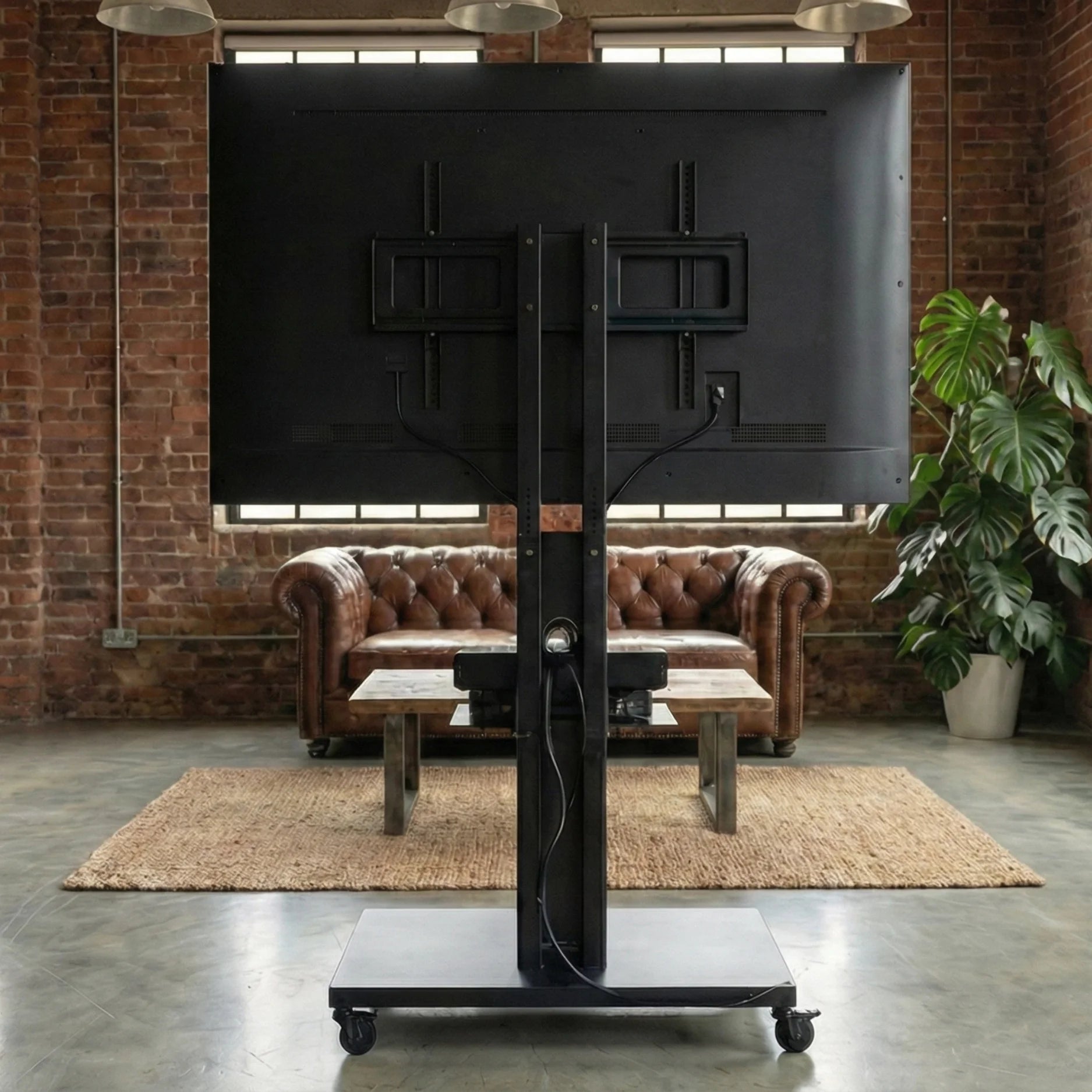 Réglez la hauteur et inclinez l’écran pour une expérience de vision personnalisée. Sa structure en métal, son design épuré et sa praticité en font un excellent choix pour ceux qui veulent éviter les supports muraux.