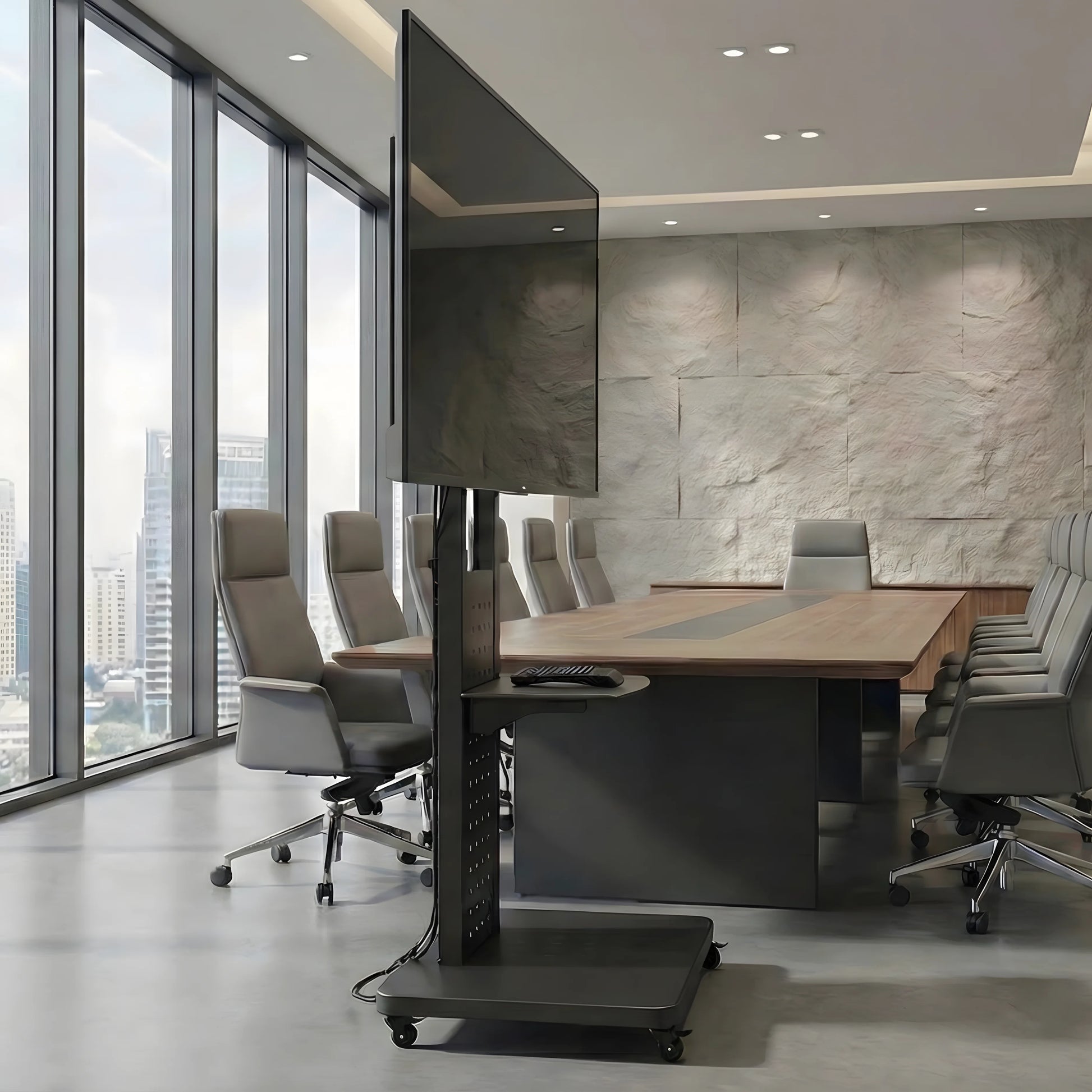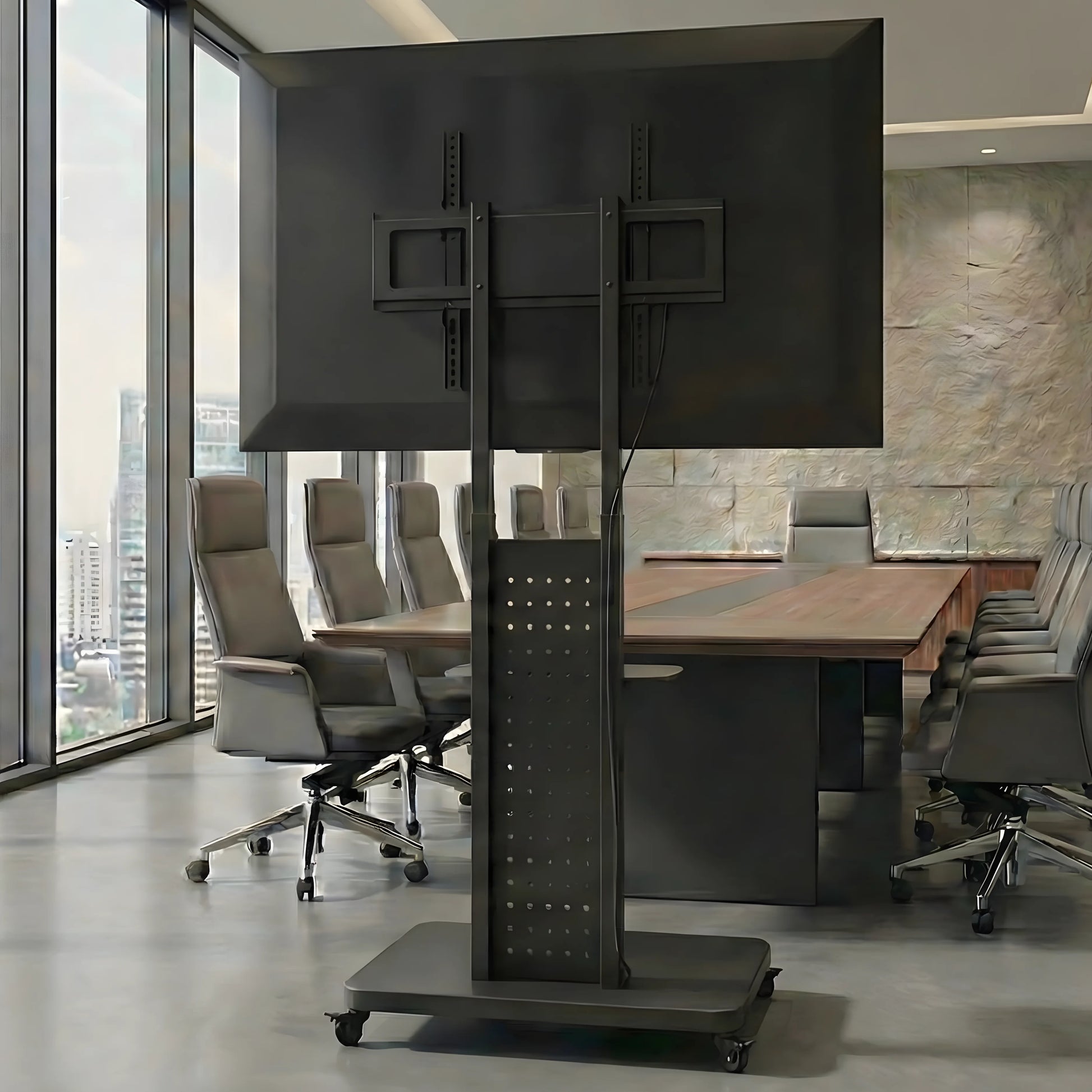 Super support, très solide, on déplace la TV sans stress. Parfait pour nos réunions.