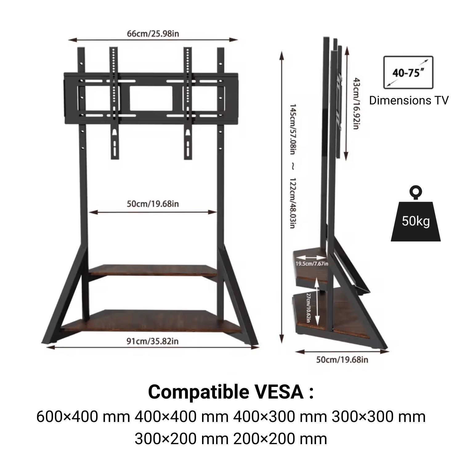 Le SteelLoft 75 est un support TV autoportant au design industriel épuré, conçu pour accueillir des écrans de 40 à 75 pouces sans perçage mural. Réglable en hauteur, doté d’une étagère pratique et capable de supporter jusqu’à 80 kg, il conjugue stabilité, esthétique et fonctionnalité pour compléter votre espace multimédia.